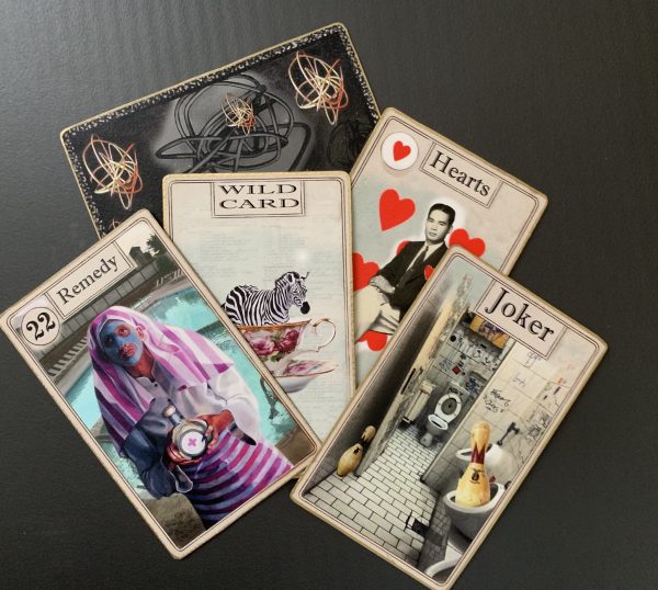Resonance of image and text is my form of divination. This set of High Stakes Divination Cards plays with the powers of suggestion. There is good fortune and then there is luck. There is chance and then circumstance. Predict your day. Choose a card to live by. Fortune telling is popular culture. Divination is a ritual of signs and omens in an attempt to organize seemingly unrelated events and logics. The dread and humor of daily life, the architecture of our social lives, the symbols of culture, odd behaviors, pleasures and pain, obsession with the tactics of empire, environmental meltdown and open sourced, random scavenged images are my vocabulary.