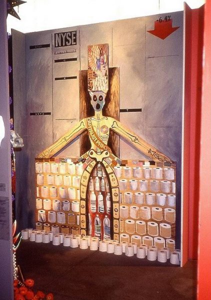 Angel Savage is the leader of a Cargo Cult Incorporate and the public relations representative of the House of Cargo Advertising Campaign. Her marketing strategies are based on her observations of commodity worshippers in our own society and on her studies of texts including The Trumpet Shall Sound, an anthropological text about Cargo Cults in the South Pacific,Cults in our Midst, The Overspent American, and Magic and the Millenium. As leader of Cargo Cult, she directs her followers in the rituals necessary to satiate their desires. Her recruits feel the excitement of greed and hysteria that permits the receipt of dreams and spirit messages: they achieve transcendence through blind consumption.