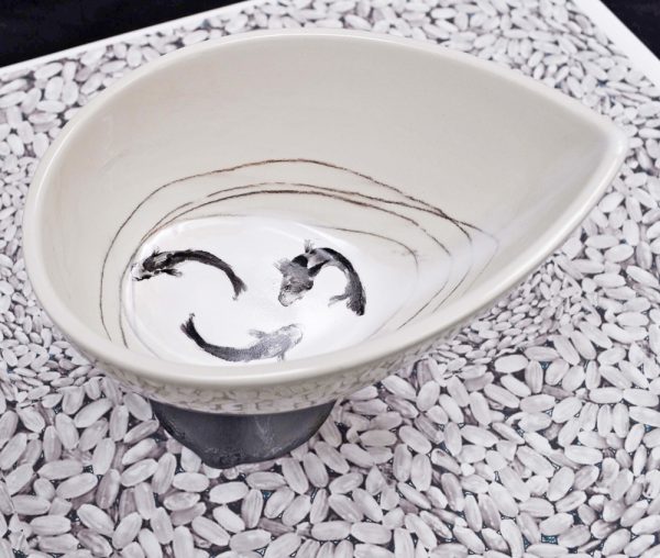 As art or as utility ceramics has built civilizations. They are the precious remains of archeological sites from which we piece together the past. They are the kitsch objects that line the shelves of the avid collector. They are the “revolutionary ceramics” of the Constructivists, feminist classics like Judy Chicago’s “The Dinner Party” and astounding public art of Antoni Gaudi in Barcelona. California has its own rich history in the development of ceramic arts and experiments in individual, public, community art and practices. “Placesetting” sets a table for this occasion, this place, this aesthetic of the home and the museum, for the everyday and for history.