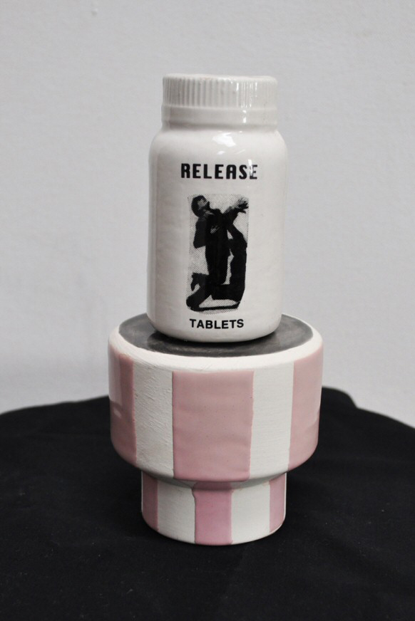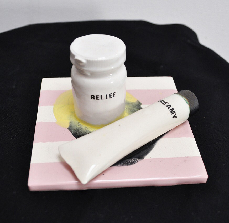 In RX (Prescriptions), images and texts assert their ability to assuage age-old physical and psychological ailments, as well as those neuroses specific to our contemporary culture. These simulated Cargo Cure pharmaceuticals reduce stress, alleviate depression and reverse the nasty effects of aging. They promise to inspire a wayward generation of hedonistic capitalists to get off the couch and back into the world, finally casting aside their social anxiety disorders.