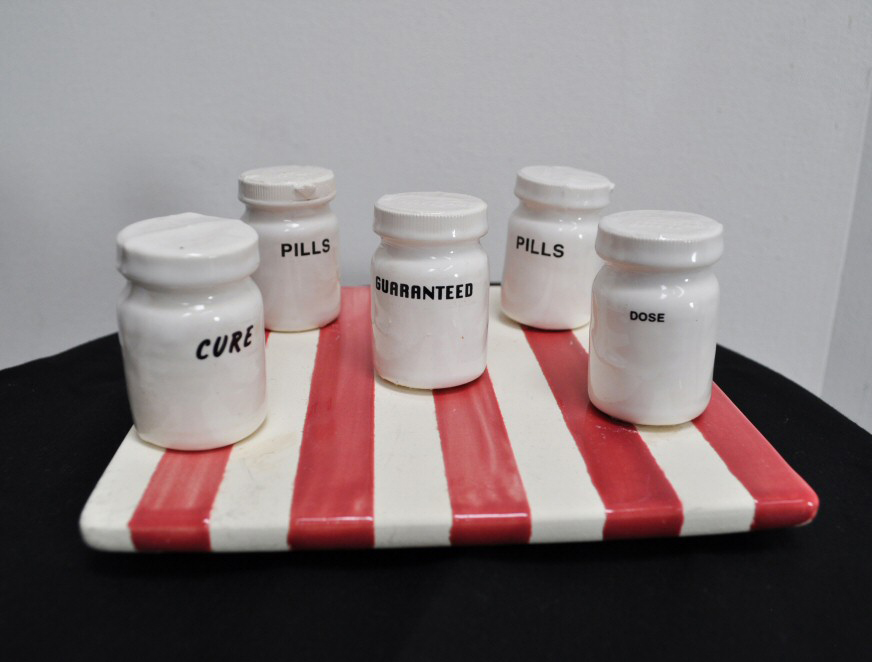 RX is the Latin abbreviation for “recipe.” In this continuing House of Cargo series, Poethig cooks up aesthetic therapies spiced with a generous helping of humor and more than a pinch of irony. Dr. Savage angelically dispenses Cargo Cures that delightfully coerce us into confronting our personal and collective maladies. Seduced into recognizing our consumer habits with more acuity, we begin to see the complex psychological deceptions they produce and reproduce worldwide.
