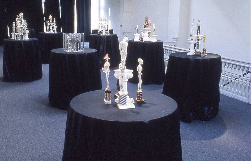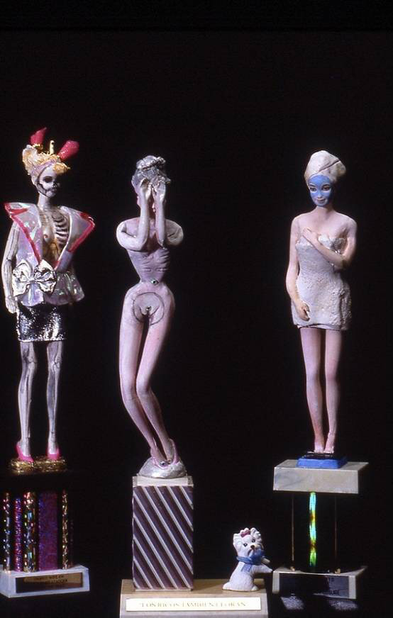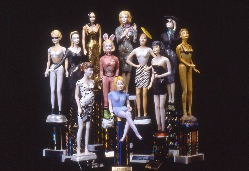 The Doll Collection imitates the upper class/caste and becomes its own mini society. Fabricated in ceramic from two molds, a Barbie and a Ken, each doll is reshaped to become specific characters, real and representative.