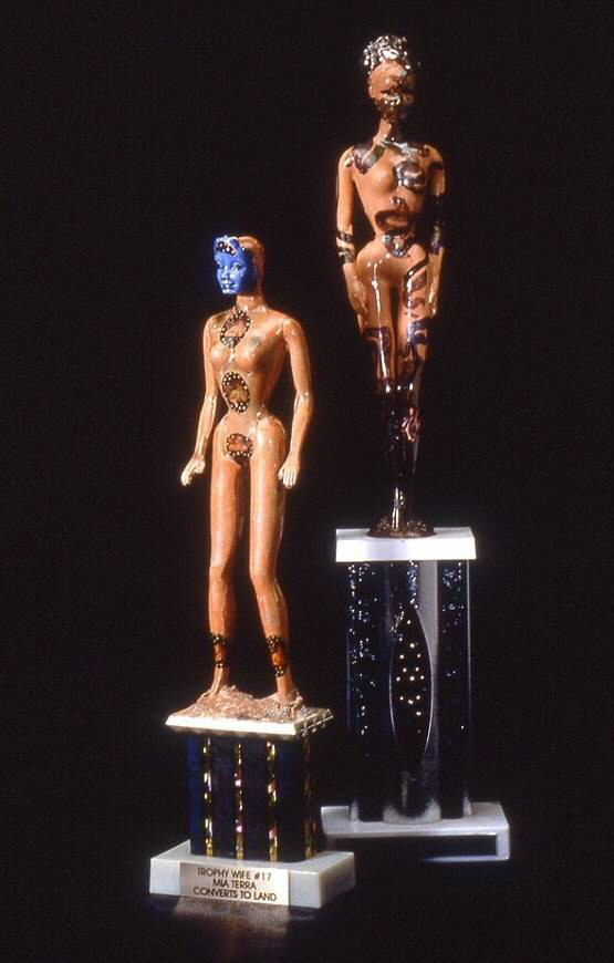 “Trophy Wives” have been in existence since patriarchal domination became the system of organization and control throughout most of the world. As the first slaves who produced children and goods the men who owned them began to accumulate wealth. With this wealth came class and after class came caste. Wealth became more than something mechanical, it transcended itself and was deified. It can decide whether you live or die, define quality and beauty, bestow intelligence on the unintelligent, give illusions sexual power and great virtue. The present day “Trophy Wives” function as objects of beauty, access to class, genealogical markers, definers of taste, place givers at the table of high society.