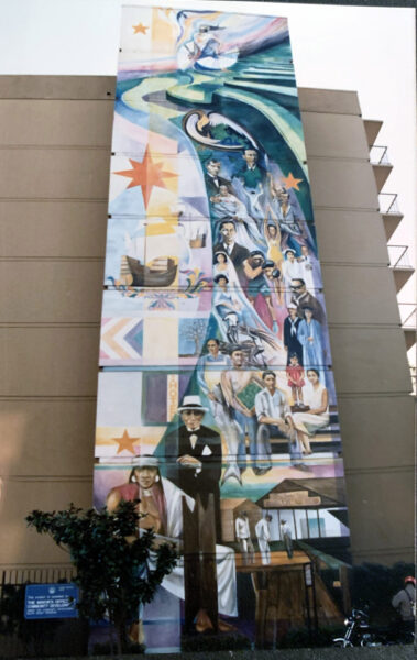 SOMA Pilipinas Filipino Cultural Heritage District unveils the restoration of the first mural depicting the history of Filipino immigration to the Americas, named “Ang Lipi ni Lapu Lapu”, which translates to “The Descendents of Lapu Lapu”. Lipi ni Lapu Lapu is a visual timeline documenting Philippine history and history of migration of Filipinos to the Americas. The mural, first installed in 1984 by lead artist Johanna Poethig, highlights the 300 year old Galleon Trade to the waves of migration including agricultural and fish workers, nurses, doctors and teachers.