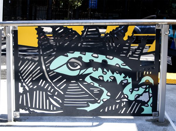 To capture this complex overlay of natural and urban flow, we propose a system that will create a visual signature for each station through variously scaled translucent and transparent honeycombed windscreen and hand-rail panels. The movement of people and traffic, as seen through these panels, will create a cinematic live action play of light and shadow. The structural aluminum honeycomb wind screens will contain a visual vocabulary articulating signifying characteristics of the passing neighborhoods focusing on the lively commercial, cultural and natural elements of the streetscape. The passing of clouds, the angle of the sun, streetlights, car lights, illuminated business signs, sparkling banners, colorful child backpacks, will all enhance and celebrate the flow this new public transport system.